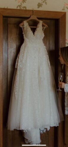 O vestido dos sonhos disponível para o dia mais lindo da sua vida! Esse Yolan Cris é delicado, com renda primorosa, tule de alta qualidade, decote na medida certa para torná-lo feminino e charmoso. Não é pesado, tecido confortável para curtir a festa toda e sem marcar nada! O véu vai de presente junto com o vestido. Os dois usados apenas 1x e estão impecáveis. Fechamento com zíper invisível, caimento perfeito de uma mini cauda. Vestido sem defeitos!
