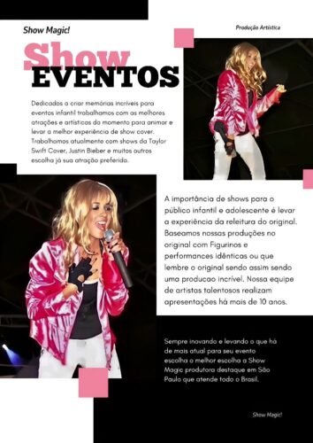 ✨️A Show Magic! Arte e Entretenimento é conhecida por seus serviços de animação com personagens, incluindo super-heróis e princesas, além de shows temáticos e outras atrações. Show Cover e produção artística para espetáculos teatrais e outros eventos.