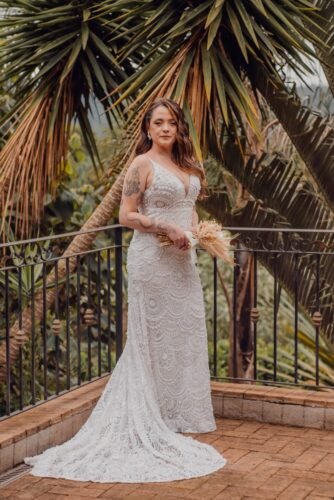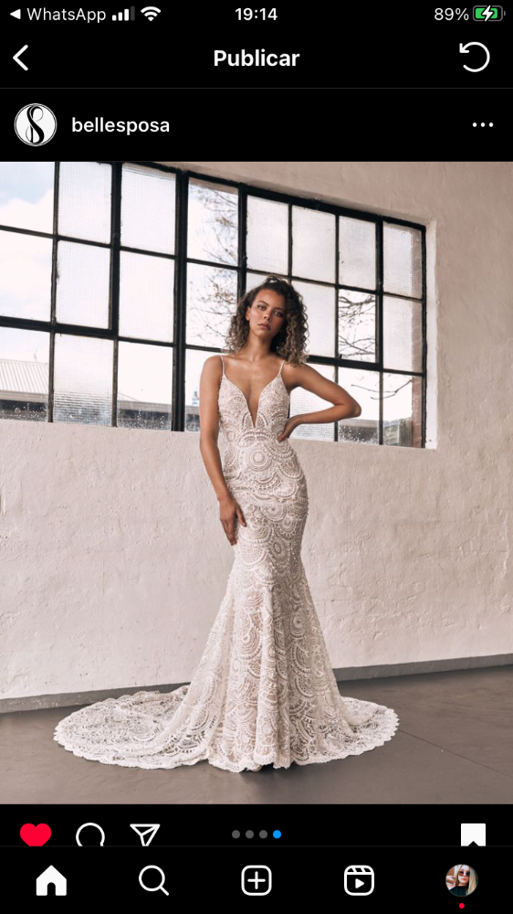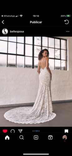 Vestido decote nas costas todo bordado com pedras. Ele é pesado e tem uma calda arredondada belíssima.