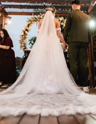 Vestido de Noiva com véu e grinalda