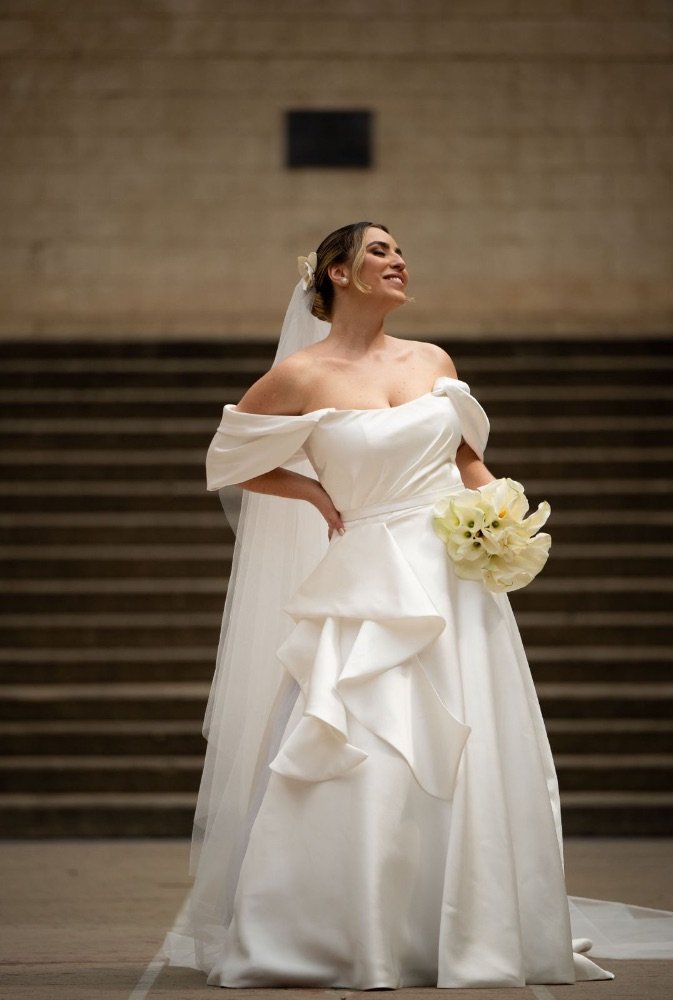 Vestido de noiva estilista Olivia Aragão feito sob medida em 2025 (veste até 42) utilizado apenas uma vez, acompanha véu e um arranjo (flor) de cabelo.