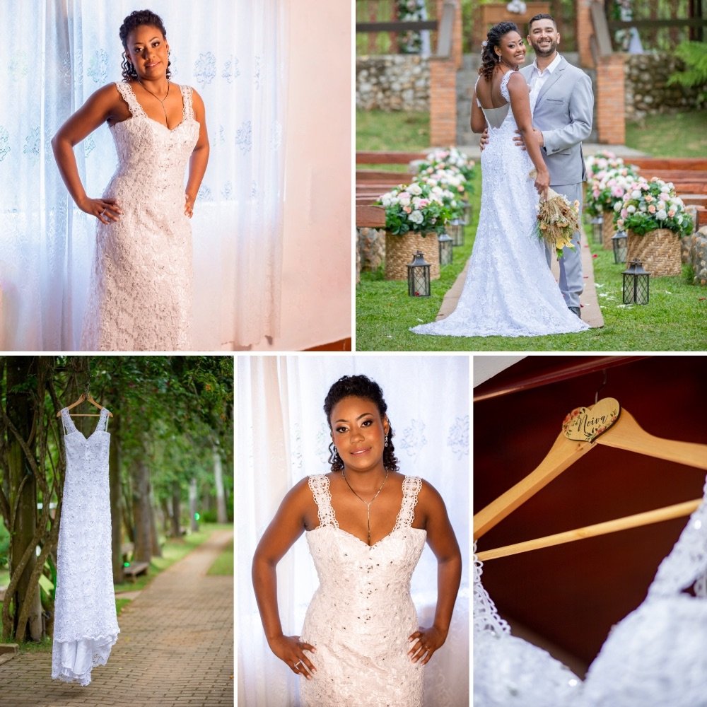 Vestido de renda guipir,tamanho 44 ajustável,com detalhe nas costas. Usado poucas horas. Cor branco com pedrarias delicadas.